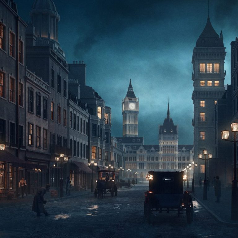 The upstage centre is dominated by a large door, referencing the significant motif from the novel. The door functions both practically and symbolically within the staging. Actors passing through it mark transitions between locations while also suggesting movement from the external world of Victorian London into the internal psychological space of Jekyll’s mind.